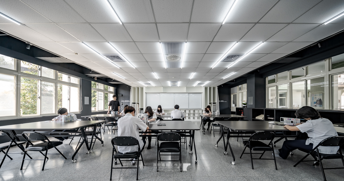 適合創意討論與發想,本科並具備視覺傳達設計國家檢定標準,配備絹印機、徽章機、熱轉印機等文創設計計設備。